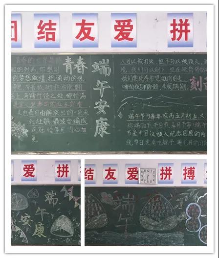 翼城五中政教处组织了主题为“品味端午,传承民俗”的黑板报评比活动。本次黑板报同样给我们美的震撼,一幅幅优秀的作品色彩鲜明,内容丰富,让学生对端午习俗有了更细致的了解,如:吃粽子、赛龙舟、挂香袋等等,也让学生对屈原的爱国情怀有了更深刻的了解,激发了学生的爱国热情和民族自豪感。